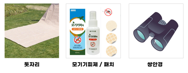한강 드론쇼 서울 드론라이트쇼를 보기 위해서는 어느 정도 준비물이 필요합니다. 조금 일찍 서둘러 가실 분들은 돗자리를 꼭 챙기시고, 모기나 벌레에 물릴 수 있으니 모기기피제 같이 챙겨서 가시거나 패치를 붙이고 가시면 좋을 것 같아요. 혹시 가까이서 보지 못할 경우를 대비하여 쌍안경이 있으신 분들은 쌍안경도 가져가시면 좋을 것 같습니다.
